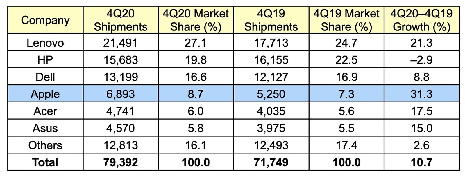 Apple's worldwide Mac shipments were up in the fourth quarter of 2020, according to new PC shipping…Ecobee Updates HomeKit-Enabled SmartCamera With Spotify Integration and More, Lowers Price to $130